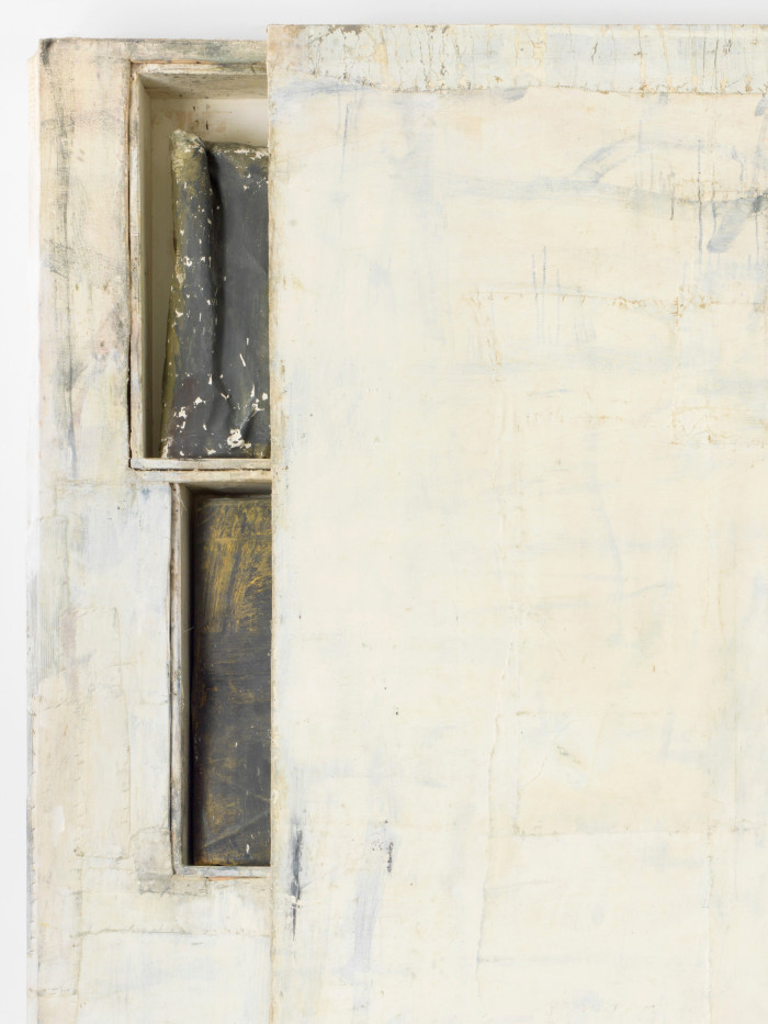 Lawrence Carroll Untitled (slip painting), 2006 Oil, wax, house paint, staples, canvas on wood, 2 painted tarps 313 (h) x 235 x 25 cm 123¼ (h) x 92½ x 9¾ inInquire