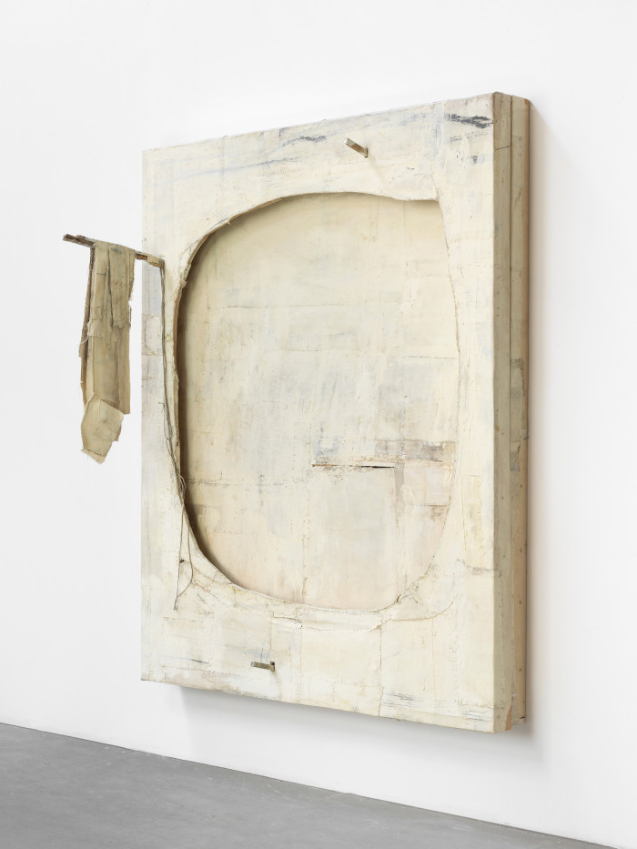 Oil, wax, house paint, canvas on wood
