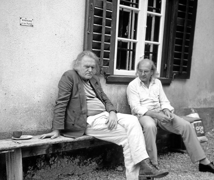Mario Merz und der Philosoph Armin Wildermuth, Schloss Rietberg 1983