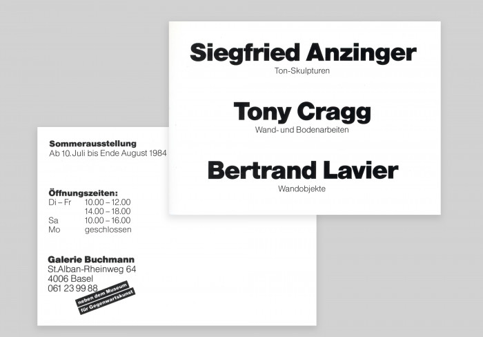 Sommerausstellung – Siegfried Anzinger, Tony Cragg, Bertrand Lavier, Buchmann Basel, Basel