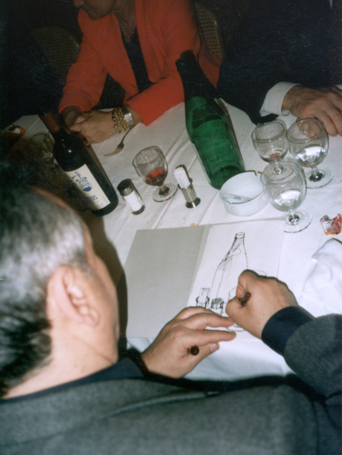 Salvo Opere recenti 12. Sep—25. Okt. 1997 Buchmann Galerie Köln loading... 1/1 Salvo drawing during the aftershow dinner at Buchmann Galerie Cologne, 1997 Anfragen