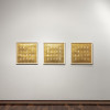 Für die Serie Life Face on Gold überzog Miyajima großformatiges Papier mit Blattgold und prägte die LED-artige Zahl Acht darüber. Darauf wurden anschließend mittels Siebdruck individuelle Zahlenfolgen von 1 bis 9 in Weiß aufgebracht. Auch hier fehlt die Null bewusst und wird so als leere Pause sichtbar, einen Moment des Verschwindens, einen Augenblick außerhalb der Zeit anzeigend.